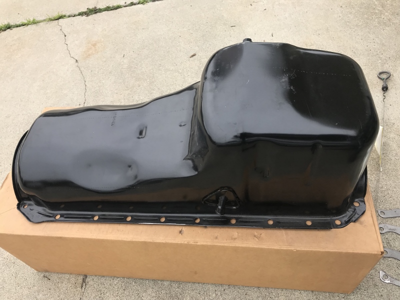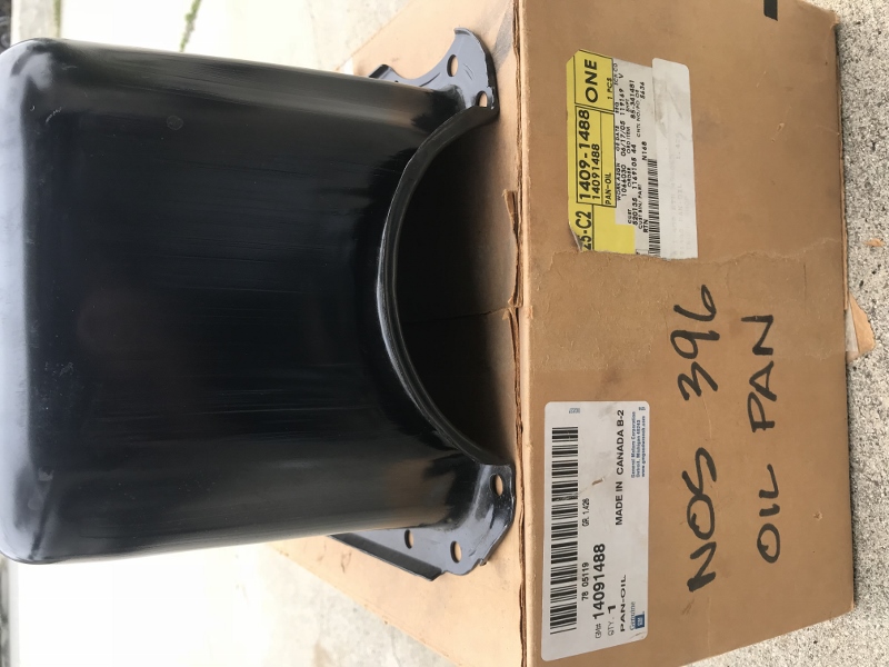 I have a real, long discontinued, GM NOS Big Block oil pan 14091488 / stamped 14091489 (this stamping was hard and dented the pan a tiny bit and was tapped out from the inside) in the original box and associated green tip round handle dip stick 3981019 and tube 3928901, also NOS as shown below. This pan is the replacement for the 3985999 oil pan and not often found. Includes the corner reinforcements of course, all as shown. Fits Chevelle & Camaro and I assume Nova. See photos, SOLD F&F PayPal for all shipped to the 48. Thanks all, Anthony Last edited by AnthonyS; 08-27-2019 at 08:14 AM. Reason: sold it sold it sold it. |