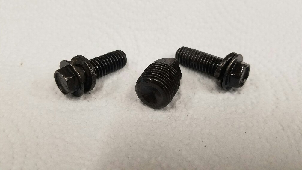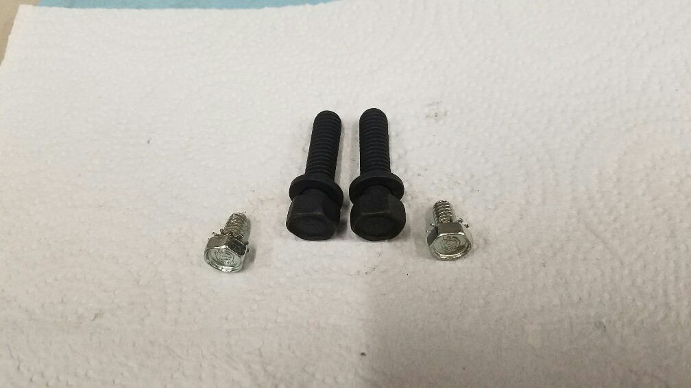 Excellent original restored small block fuel pump mounting bolts and fuel pump plate to block mounting bolts.