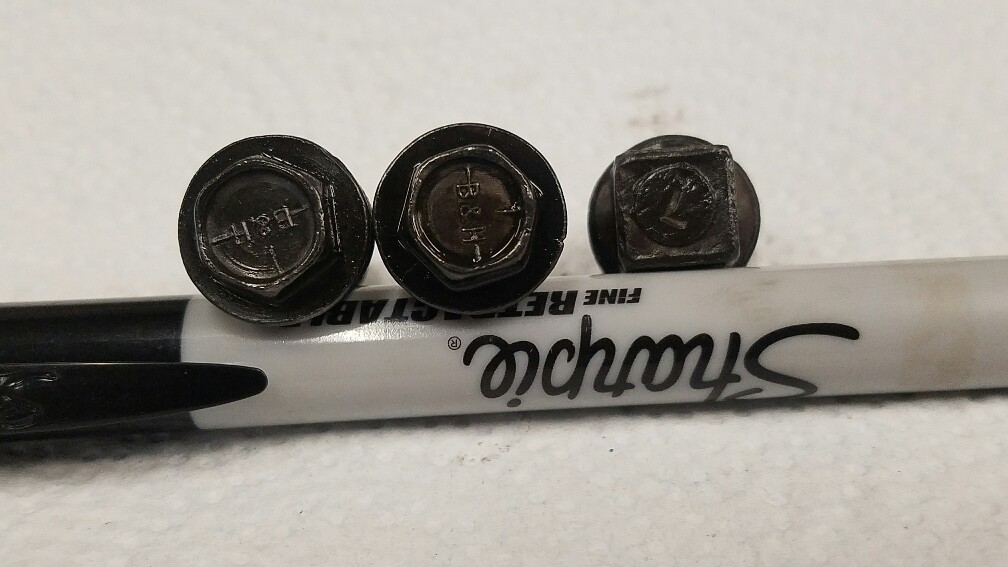 These are the 9/16 hex design fuel pump mounting bolts with the flying f head marking and the fuel pump mounting plate bolts have SEMS for their head marking. I've included a picture to show why the mounting plate bolts are unique to this application and most people have the wrong ones. The fuel pump mounting plate bolts are a little bit longer than regular timing chain cover and small block oil pan side rail bolts. And that's to make up the difference for the thickness of the plate itself that they're mounting. $45 for the set. Two sets available. Last edited by Enoch; 12-11-2019 at 06:52 PM. |