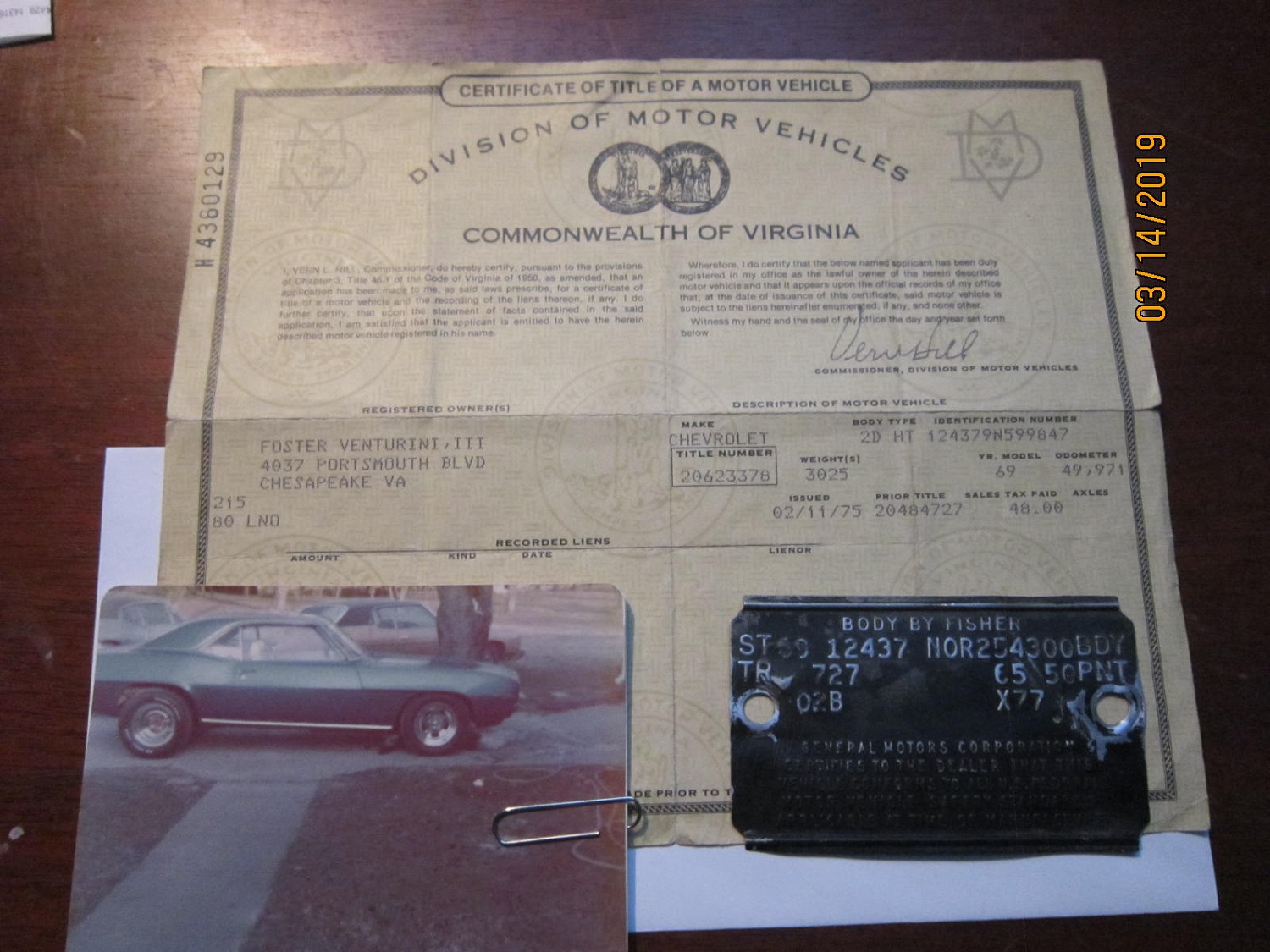 Link to 1969 Camaro Z/28 auction ![]() ![]() 124379N667963 |