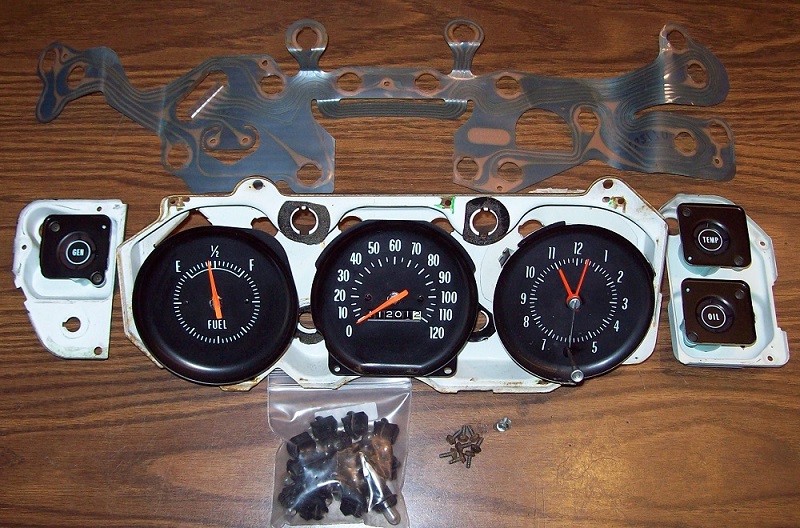 Speedometer is dated November 4 1969, Clock is dated April 27 1970 and Circuit board is dated May 27 1970 -Clock (Works perfectly) not quartz Day 1 Mechanical (PM for Video) $250 *SOLD* -Speedometer (Works perfectly) (PM for video) $125 *SOLD* -Fuel/Gas gauge (Works Perfectly) $100 *SOLD* -Circuit board Near Mint with no Cracks or issues $125 *SOLD* -Single Gauge GEN-TEMP-OIL $25 each or take all 3 for $60 *SOLD* -Metal Backing plate with Lights and screws $60 *SOLD* Prices USD, Paypal "Friends", shipping extra.