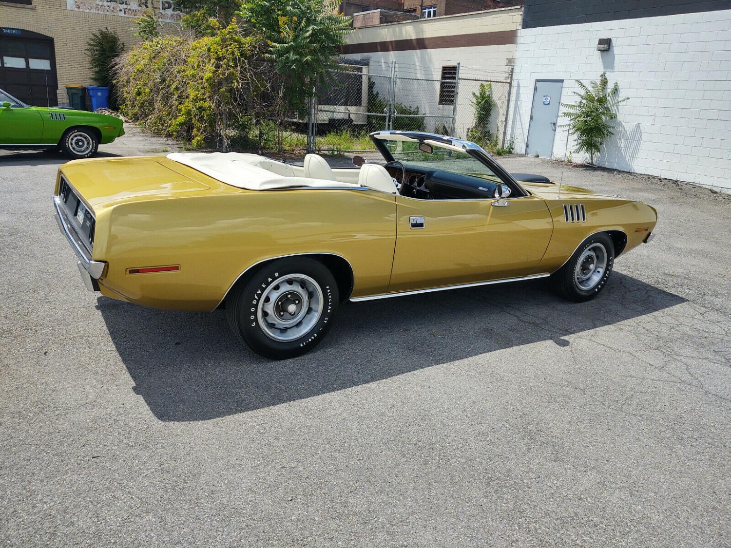 Reminds me of the 1971 Barracuda GY8 Gold, white/blk interior convertible 318 3-spd that I chased in the late 80's that was located on Klenk Island in Detroit. Cranky original owner and car was all original, when I was finally able to check it out and buy it... ..........if you opened a door you needed a floor jack to jack the car back up to get the door to close, I passed on it.