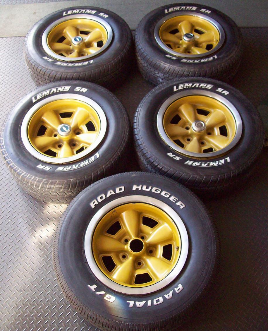 Excellent condition and tires are still useable with plenty of tread. You get all 5 Rims and tires for $1200 Canuck bucks or B.O. Date codes are 1971 and 1972. True GM "AU" stamped rims. Trim Rings are GM in Excellent condition, Caps I think are Repro.