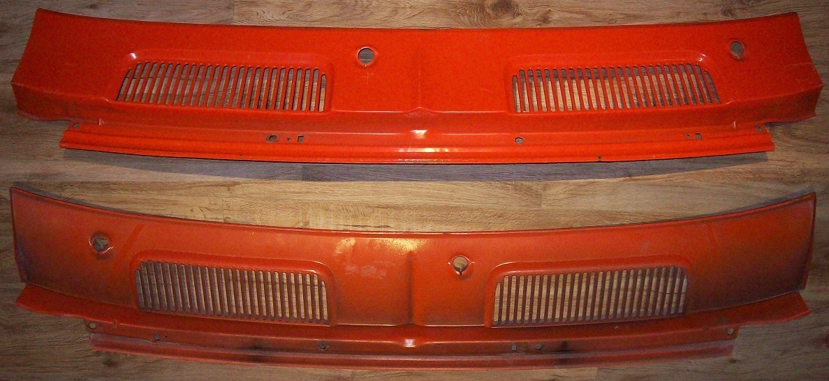 1967 1968 1969 Camaro Rear Hood Cowl Panel Nice Original piece painted Hugger Orange, no dents or rotting.