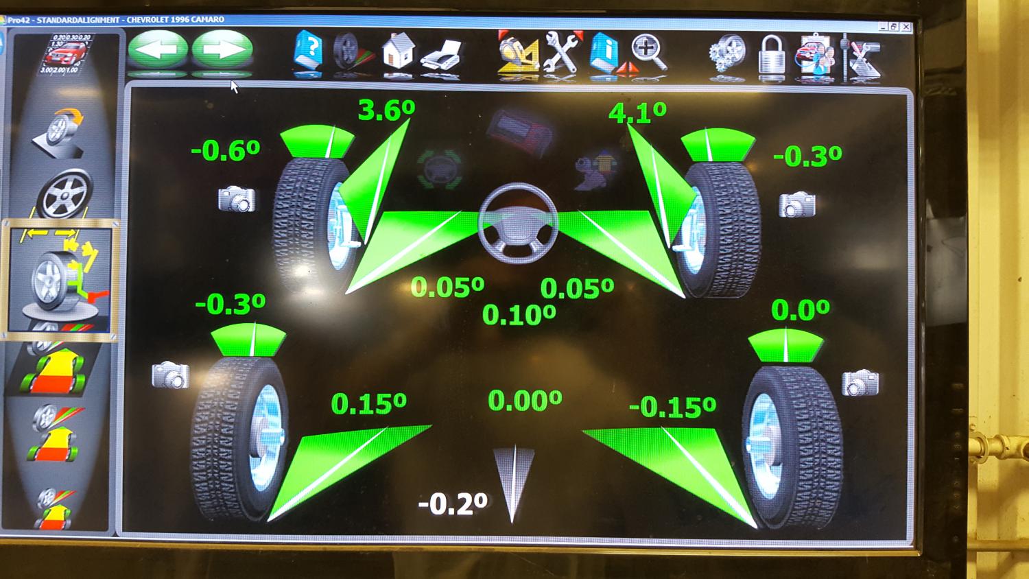 These were my results with stock A arms on a 69 Camaro. I could not get them any better. Chart shows 1996 Camaro because it did not have 69 spec data pre-installed. I was trying to get as much positive Caster as possible. I run BF Goodrich TA's.