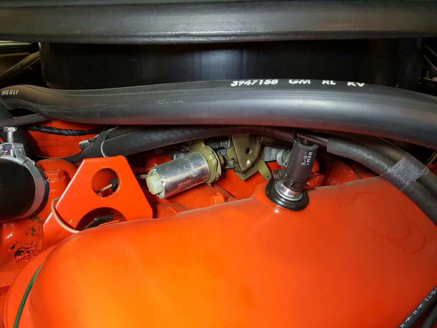 ........and from what I've seen on Survivor cars the oil fill cap must have been installed when the engine was painted orange as they all have orange paint on them. Same holds true for "U" code 402 cars as well.