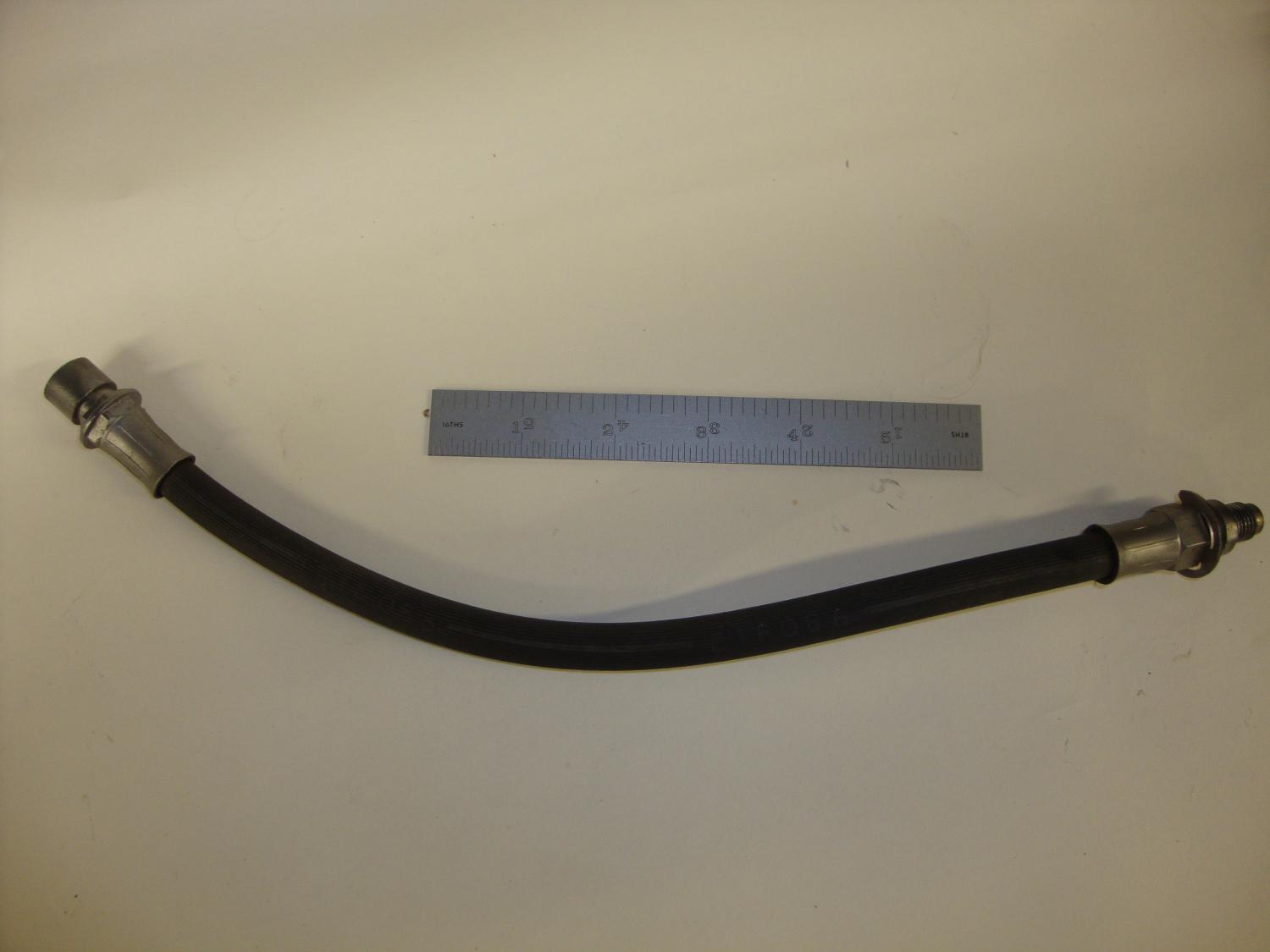 1967 Camaro 12 bolt Rear. LOS 1967 396/375 4K Car currently under re-restoration. UPC 5/B2 PN Not sure: 3910720 or 3898234 ?? NO Brass block included: Hose is the More difficult to source in this condition. Could this work on a 68 also, I think so. Cleaned up: Intact, Threads and seat in Great condition, Hoes Flexable (NO! Cracking that I Can SEE!YEA) and gentley aged WITH two sets of stenciling still visible. The Hose is clear and flow confirmed via Air compressor test. Two (2) visible INK manufacture stamps,, Hose has two Stencils; One side Wide white continuous line, Other side narrow white broken line with Part number Seen. "B16086" Metal ends lack the Aged Plating finish but present well and both ends have Metal indent manufactures stamps visible. Offering now "as is" prior to sending to Zinc Plater for end plating- renewing then relisting, to see if customer would prefer PRIOR to plating for their survivor judged car. 150.00 (*Subject to revision AFTER plating) Paypal F&F + shipping from 98311 USPS Thanks