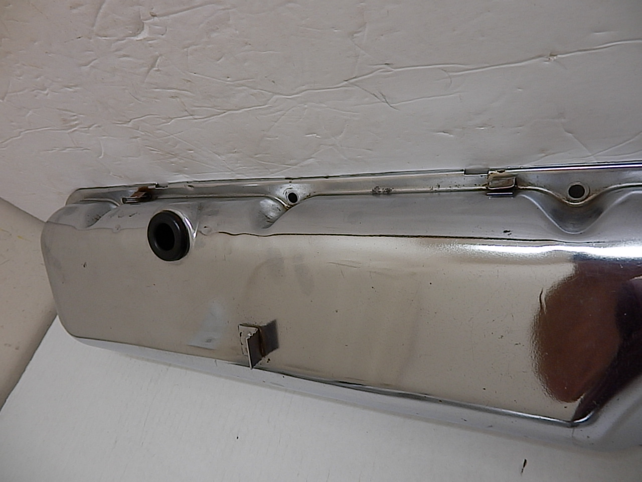 These are original assembly line correct flash chrome for a 1967 Chevelle 396-350 HP non-dripper. They are in nice condition with only 1 small ding on the front right side above the front lower bolt hole. IMO I would leave it alone, it would look more noticeable if you tried to hammer it out.