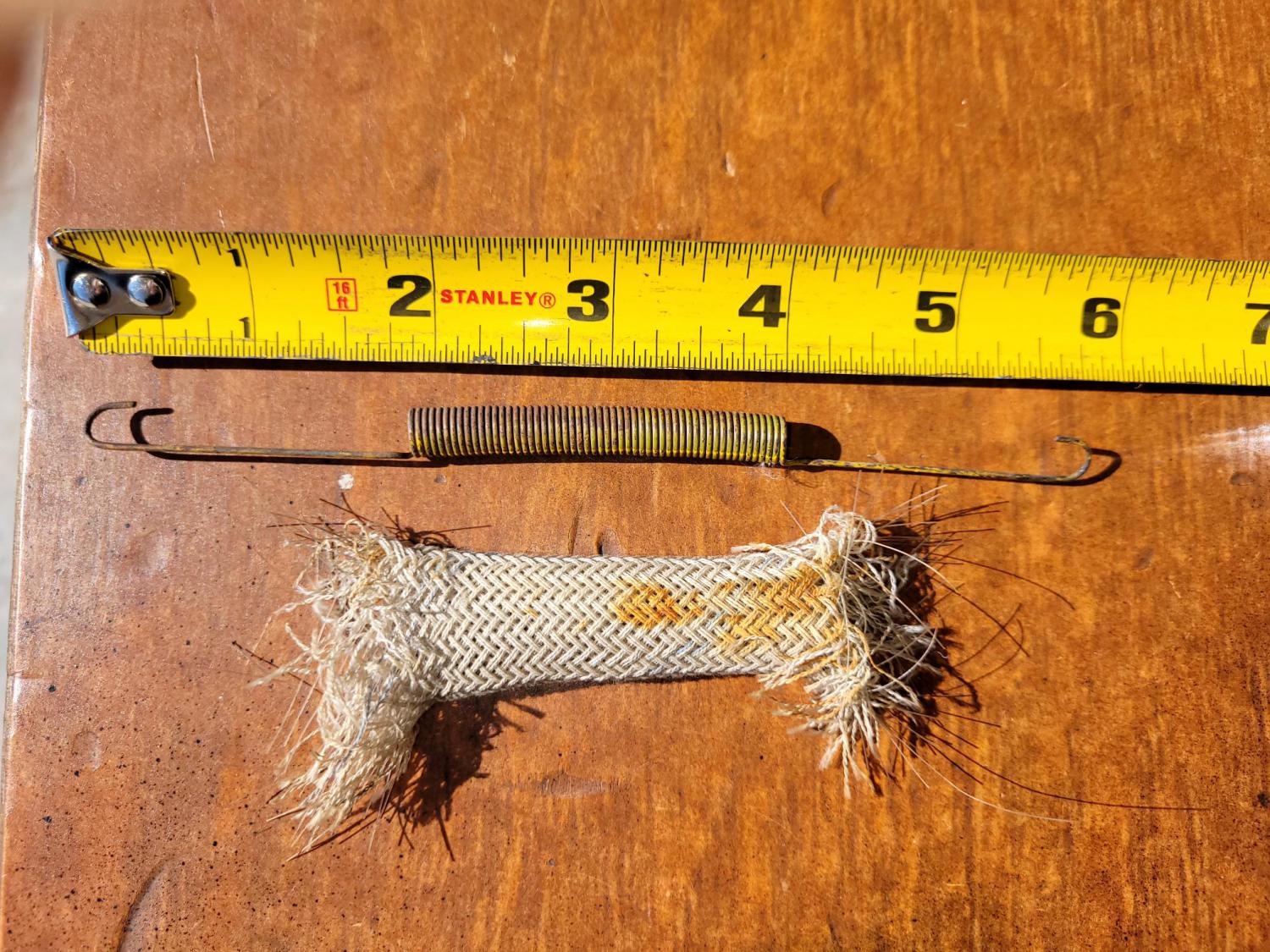 Thanks Jim. This spring is light weight compared to the seat springs and it has a cloth covering like the rod from the inside door handle to the latch. I would say it would be to keep a slight tension on some part?