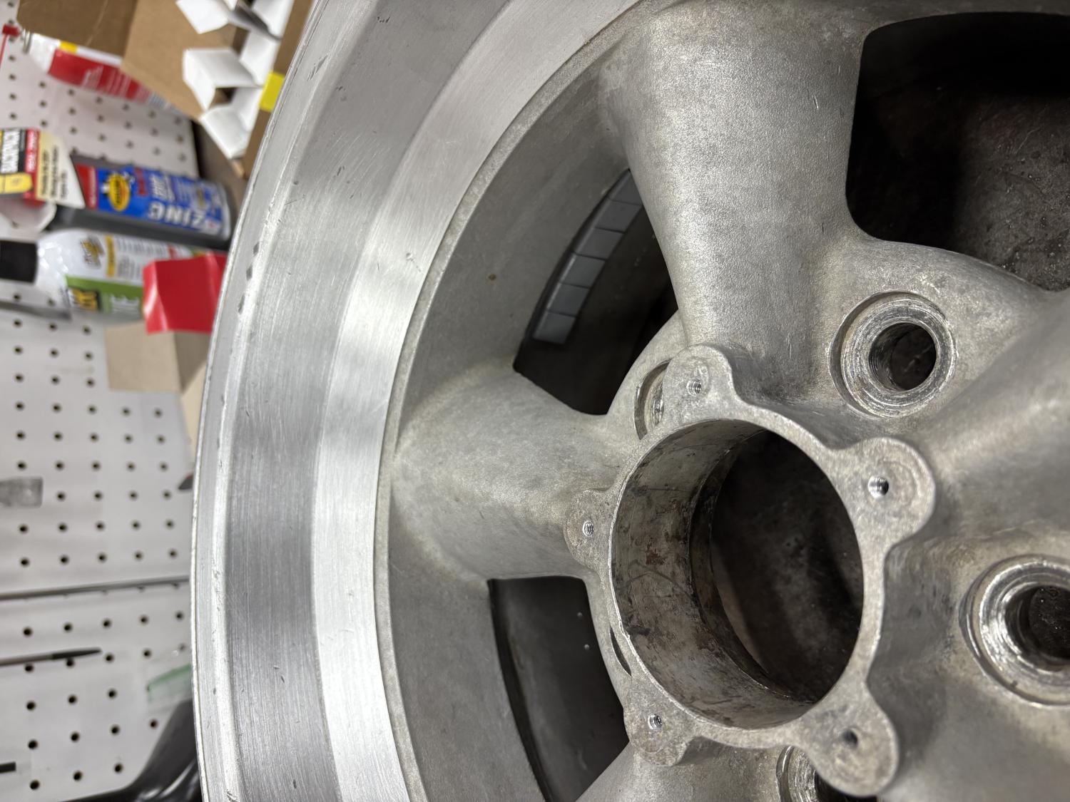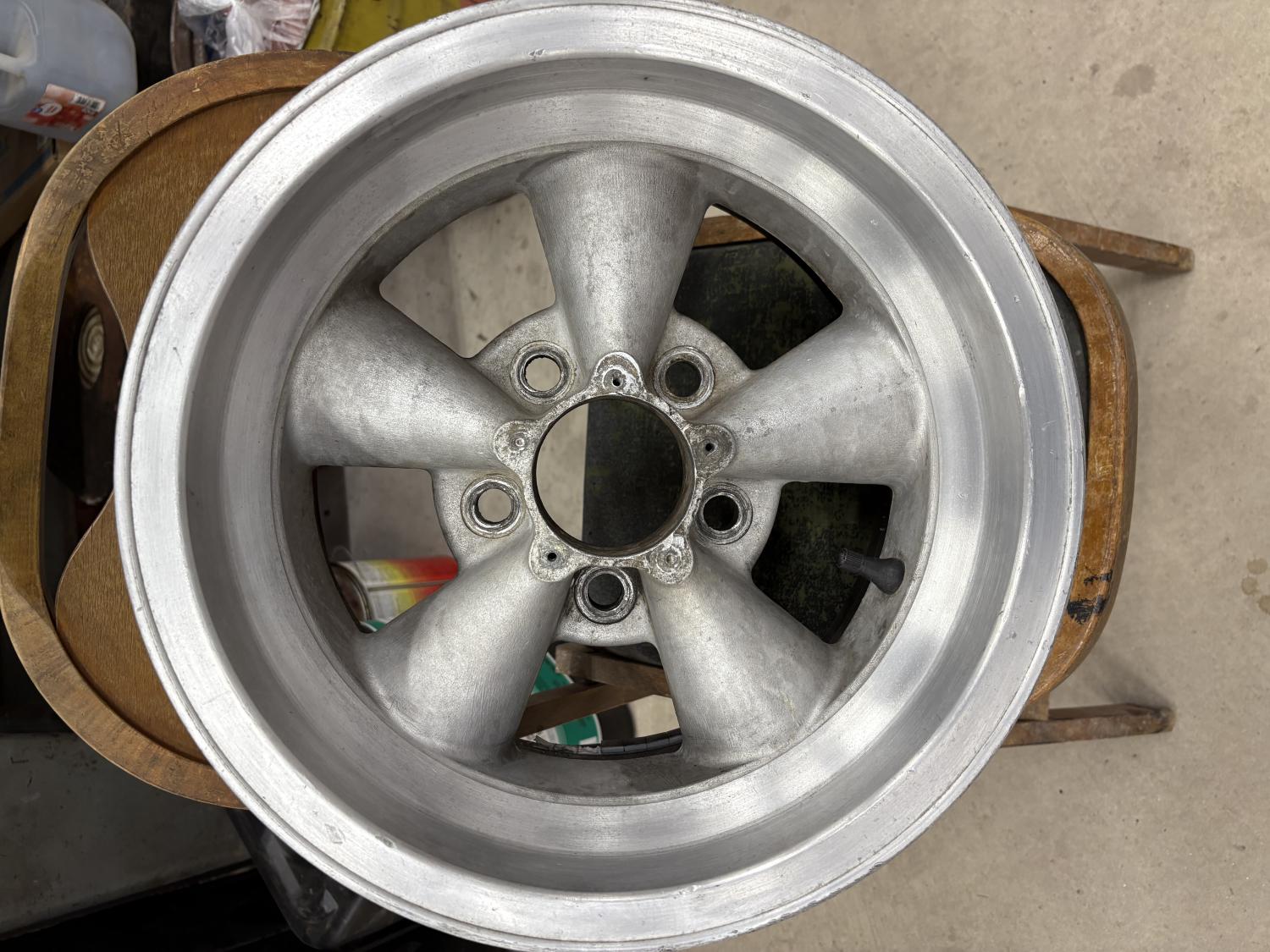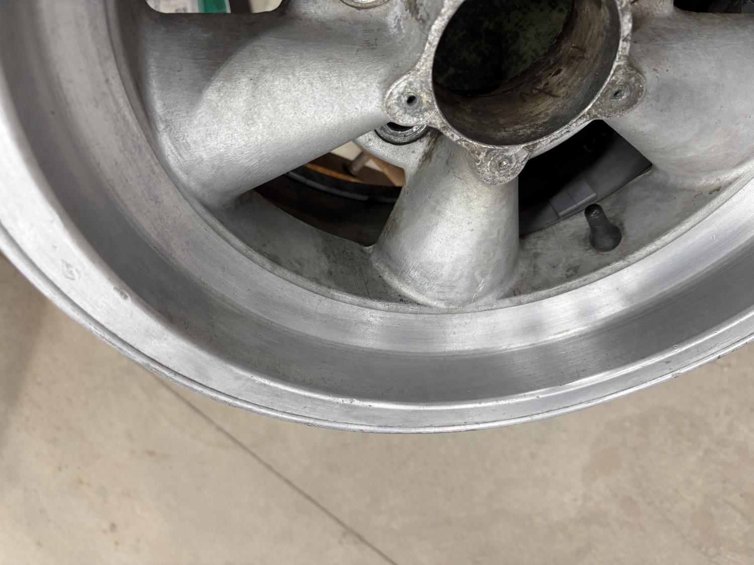 Genuine American Racing 14 x 7 wheel. ˝ inch positive offset with ROUND spokes. THIS IS A VERY EARLY RARE WHEEL. They started the “peaked” spoke wheel in 1965. 100% straight and true. It balanced just fine with a new tire on it. I only have the one. My other five are the later peak spoke wheels. Although I prefer the round, I have given up on finding three or four more. I only have the one wheel. All of mine are raised edge spokes. This one also has two broken screws in it where the center cap attaches, so you will have to deal with that. Or just use as is. Guaranteed to be straight and true. HAVE IT LISTED ON FB FOR $50, BUT FREE TO A PAID MEMBER ON THIS SITE. These are really hard to come by. Fits perfect on a Tri Five Chevy (I took it off my 57). It will fit MANY other Chevy cars from the era up to and including first gen Camaros. I do NOT know if it will fit disc brake first gens. My GUESS is “no”. Pay actual shipping, or I can deliver to MCACN. FREE. No, you can't talk me down on the price. That's as good as it gets.