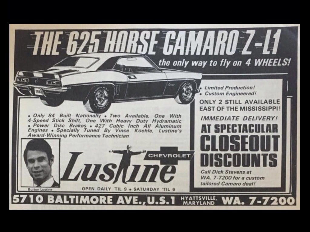 Malcolm Durham had ZL-1 #42 sold and sponsored by Lustine Chevrolet
