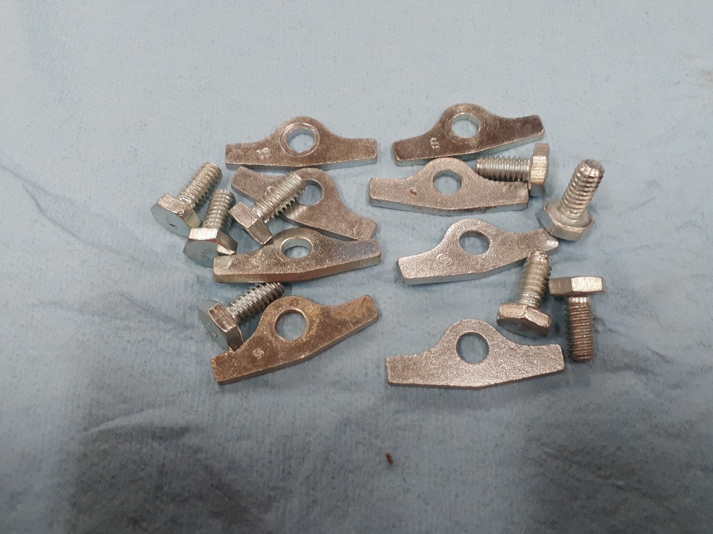 Small block valve cover retaining bolts and S stamped hold Downs. Correct for steel valve cover equipped cars such as l79 and 67 and 68 Z28. $80. Ppff ************SOLD************
