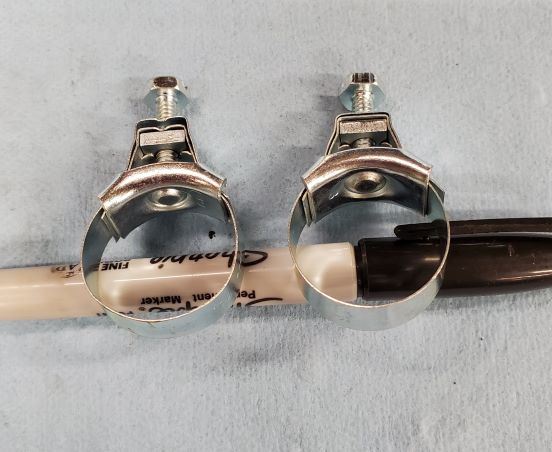 Two 1 and 1/4 inch power clamps. One stamp DCM the other dated fourth quarter 67. Both of them restored in an absolutely perfect condition.