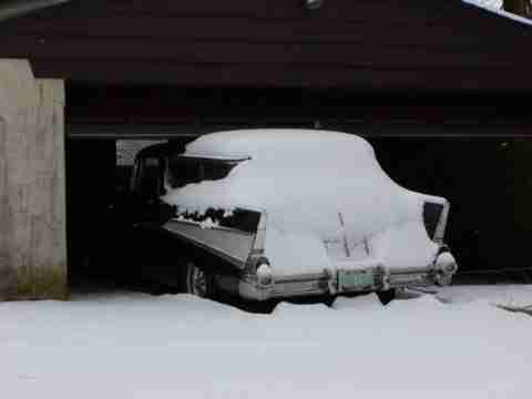 I posted this car before, but for the first time in 4 years they almost pushed it into the garage. Snow just brings out the best in people. BTW, the driver's window is still open.
