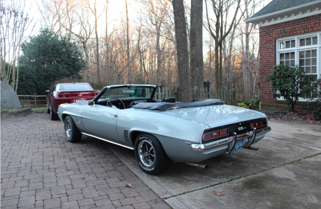 Bump for new price and pictures. I have further detailed the engine compartment beyond these pictures. Removed and painted the alternator bracket, installed new alternator fan and pulley, removed fan, water pump pulley and painted those. Looks good! _________________________ I am selling my OEM drivetrain, just painted, original interior 46K documented miles original Big Block 69 Camaro Convertible X-66 no style trim Big Block. This car is a L-35 turbo 400 automatic car with AM/FM, PS, PB, black deluxe interior, rear speaker, endura front bumper, OEM Rosewood steering wheel, original voltage regulator, distributor, carb, intake manifold, horn relay, fan, horns, brake booster.Correct exhaust manifolds,smog, Harrison radiator, master cylinder. I have a replacement booster on the car but the original goes with the car. The interior is absolutely original and in fantastic condition for being 46 years old. The carpet is not torn, slightly faded but all original. The original seat belts are in place, the original dash pad is in great condition. The door panels are perfect and look like NOS panels that just came off the shelf. All four windows roll up perfect. The front windshield is the one installed at Norwood. The radio works well including the fader. All gauges and accessories work well. All lights work as they should. This is an original 46K mile car that drives, stops as an original car should. The car drives fantastic. The rear gear is 3.07 positive traction. The car was just painted with a few areas in the outer wheel houses repaired. The lower driver door behind the door panel was repaired. Debris gathered and plugged the drain hole here and caused a small spot that was repaired. This area is not at the bottom of the door but about the size of a Silver dollar on the inside of the door, but repaired. The floors, trunk pan are OEM correct. The front fenders are GM replacement. See the GM stickers inside the fenders that I photographed when we the fenders were removed. The driver side inner fender is assembly line correct. I assume that the passenger side inner fender was not assembly line correct because there were no dust shield staples installed. However, this piece is a GM part. The lower quarters have been replaced, but the upper quarters are assembly line correct. The factory stamps are in place. The lower quarters are not lapped but butt welded to the uppers. The rear tail panel is assembly line correct see the stamp. The gas tank is OEM date code present. The gas tank and the underside of the car is undercoated and not restored all original. The convertible top is manual, old and in good shape but not new. However, shows well. The original jack, stand, hook and handle are in the trunk. SS wheels with new tires, and also original YJ Rally's, caps and trim rings go with the car. The original trim tag is on the car, as well as all the vin numbers. The rear bumper was re-plated, the original door handles re-plated, the original windshield header re-plated. This is a mid-December '68 car so the early seats, and kick panels are all in place. More pictures here: https://1969camarossconvertible396.s...m/pictures#n_5 Lawrence 704 904 6092