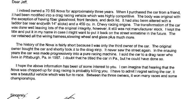 With the 70 Yenko Nova VIN list I've located a possible owner of a Yenko in my state. The title was changed in 96 and through some lucky info (a family member works at a liscence bureau)and the last time it was liscenced was 96. I had to do a lot of digging to find this guy. He even recently moved. But apparently doesn't have a published number or anything. Its about 2 hours away, should I just take the chance and try going to his house? Or am I out of line by digging to deep to find out all about this guy? He doesn't seem to want to be found. Of course my wife thinks I have a screw loose for even thinking about it.