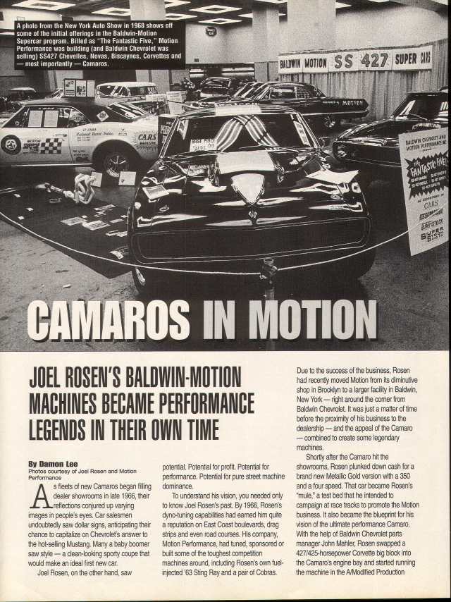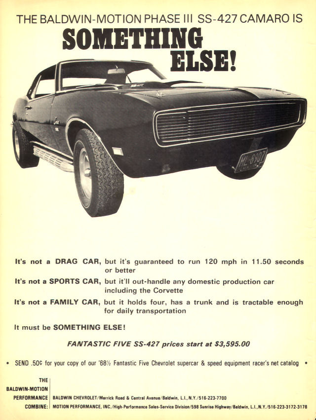 ![]() [ QUOTE ] COVER: If you're looking for the ultimate mind-bender, this is it! Phase III SS-427 Camaro is the only supercar offered in the world which is guaranteed to run 120 mph in 11.50 seconds or better on a sanctioned NHRA-AHRA quarter-mile track. A full-scale test appears Page 39 of this issue. The engine is the aluminum-head L-88 which is an extra-cost option on the Camaro. [/ QUOTE ]