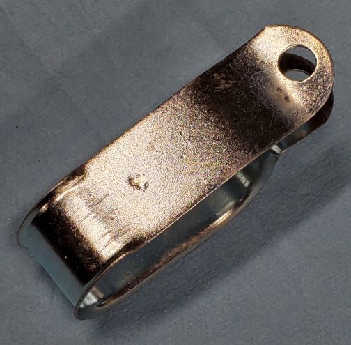 Perfect original heater hose to alternator bracket mounting clip. This was stripped and zinc plated. The AS stamping is very clear as are all the stamping marks from its manufacturing. As nice as you're gonna find. All it needs is a coat of black paint. $20. PPFF