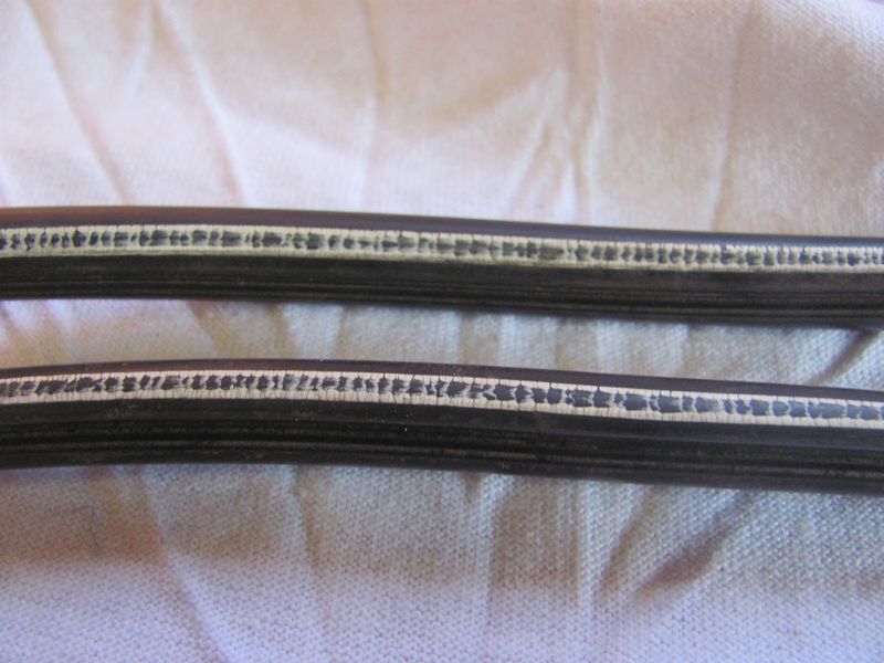 6' of 1/8" white stripe vacuum advance Line Also used for Choke pull offs, Tri Power Secondary carb Lines, Smog vacuum advance retard Line, A/C water Shut off line, Original stenciling of the stripe with factory imperfections (you can see where the ink rolled had a dry spot!!. The repro lines have a different texture to the hose and don't have the ribs the originals do. 20.00 Per foot or 80.00 for the 6" shipped to the lower 48. |
