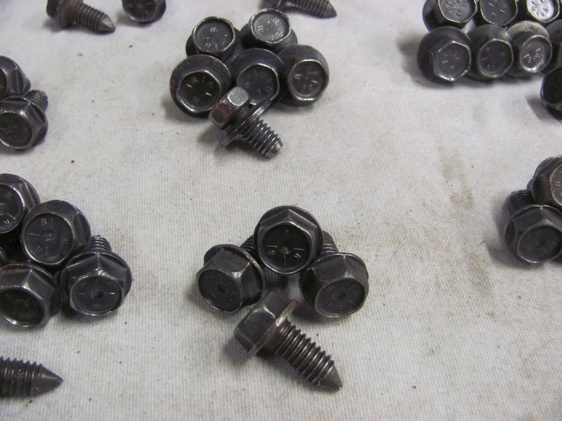 Included are: 10 RBW fender extension to fender bolts (GM PT # 4960314) 12 RBW Wheel well lip to fender mounting bolts (GM PT# 3846202) 6 RBW fender to header mounting bolts (GM PT# 4940314) 4 RBW Wheel well to radiator support bolts (GM PT# 3846202) 6 RBW fender extension to lower valance bolts (GM PT# 4960314) 4 RBW Hood Latch to hood bolts (GM PT# 3846202) 4 RBW hood catch to radiator support/header bolts (GM PT# 3846202) 4 RBW radiator support to shroud bracket+valance and grill support to radiator support bolts (GMPT# 49603140 4 RBW Fender (by hood height adjuster) to radiator support bolts (GM PT# 3846201) 2 RBW and 2 RBW fender brace rods bolts GM PT#'s 3846201 + 4960314) 4 flying f wheel well brace to firewall bolts (GM PT# 3856065) ALL ARE IN EXCELLENT ORIGINAL CONDITION. 675.00 for the complete set. |