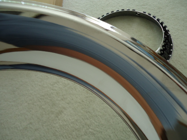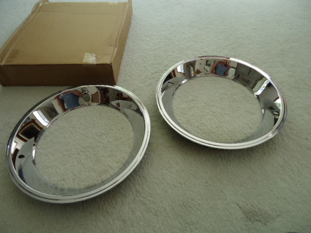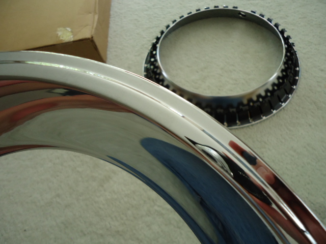 Two brand new reproduction Stainless Steel chrome beauty rings in the box,for GM.