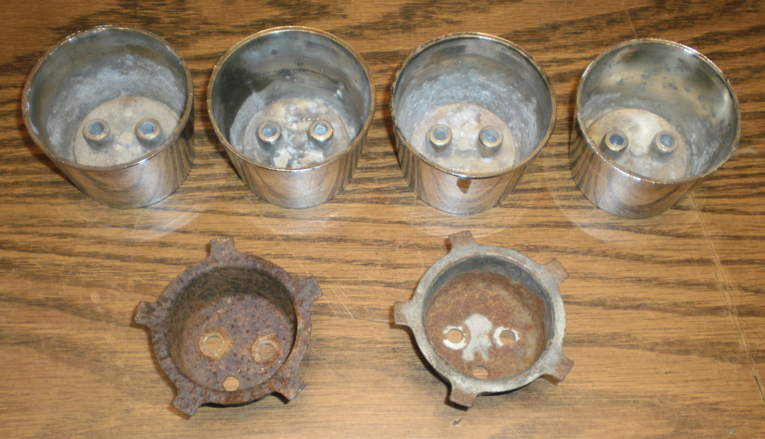 For Sale >>> Original GM Deep Set 3956770 First Design SS Center caps with two retainers. These are Cores that need to be Re-Chromed with New Stickers Added or use as is for a survivor or driver. GM Part Number on the inside backs. $150 takes everything with Free Shipping.