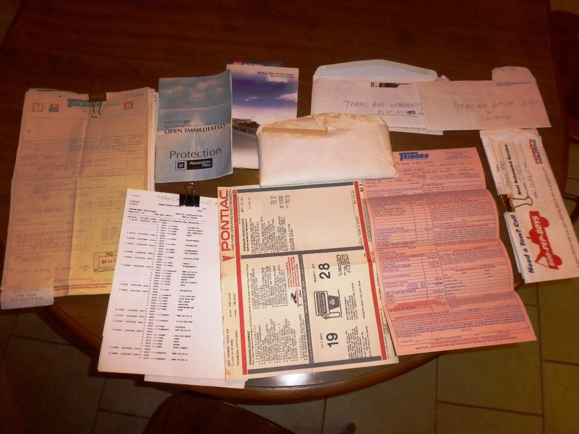 2001 WS6 Trans Am with a 6-speed manual transmission. Black with ebony leather interior. 63,640 documented miles. Original born-with engine, T56 transmission and rear. I purchased it in 2014 from the original owner, who bought it new in Cinnaminson, New Jersey. Being a maintenance fanatic, she purchased 15 years of GM extended warranties on the car and it was dealer maintained up into 2016! I have every piece of original paperwork on the car – window sticker, invoice, and a ¾ inch thick, stack of GM receipts from day one to this year.