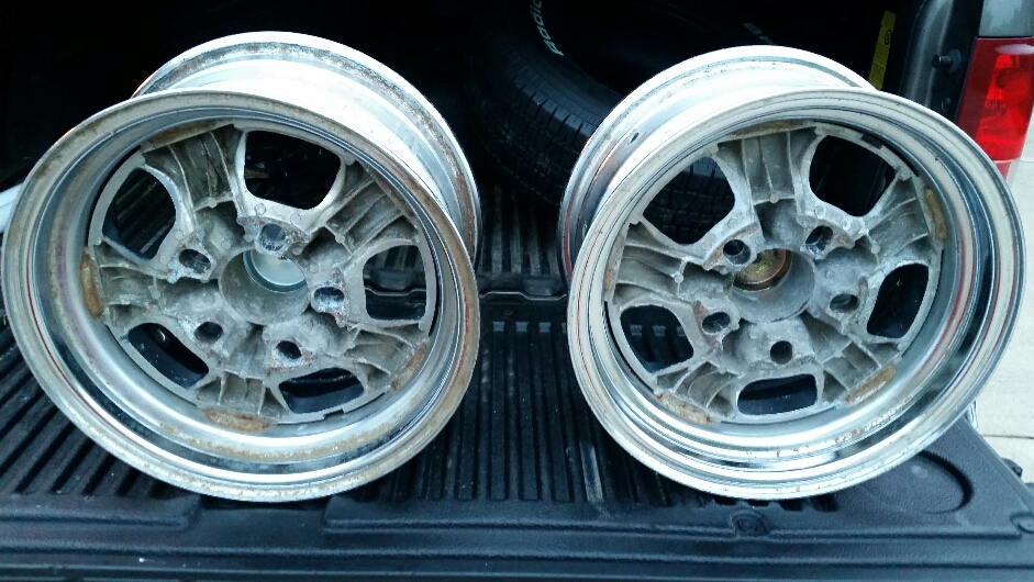 These wheels are made in the USA. I believe they are dated 1989. These would look great day 2 with slicks or cheater slicks. You don't see Keystones much. I would much rather deliver these in person to MCACN next month but can ship. I will have to get a shipping cost. PRICE: $100.00 ONE HUNDRED DOLLARS. Thanks. Rich