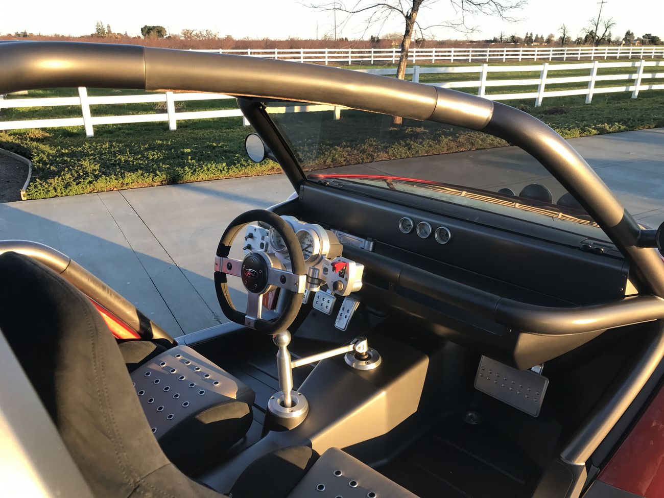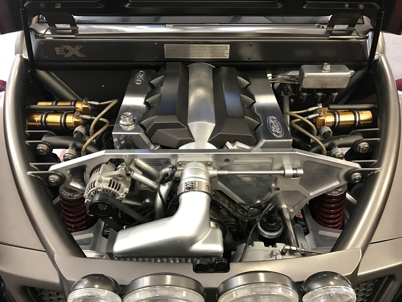 2001 Ford EX Concept. Shown at 2001 Detroit Auto Show. 375 hp Supercharged V6, 5 speed, all billet suspension, experimental tires, one off rims etc. Steering column swings side to side for vehicle entry. Amazing workmanship. Not street legal but would make a really cool pit vehicle or mount a surfboard on the top. 90K [email protected]