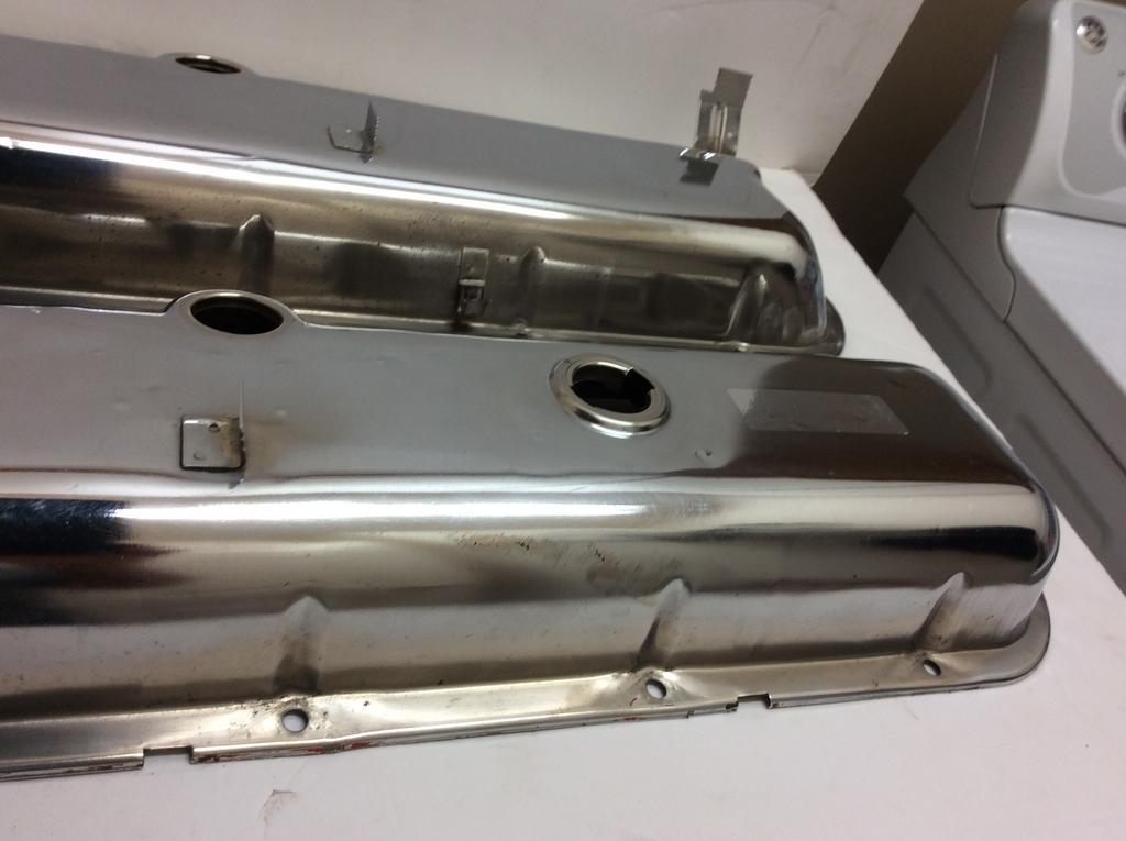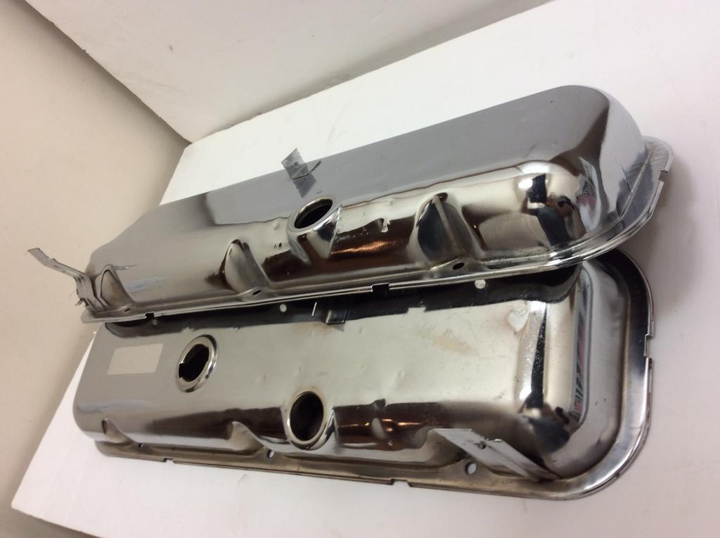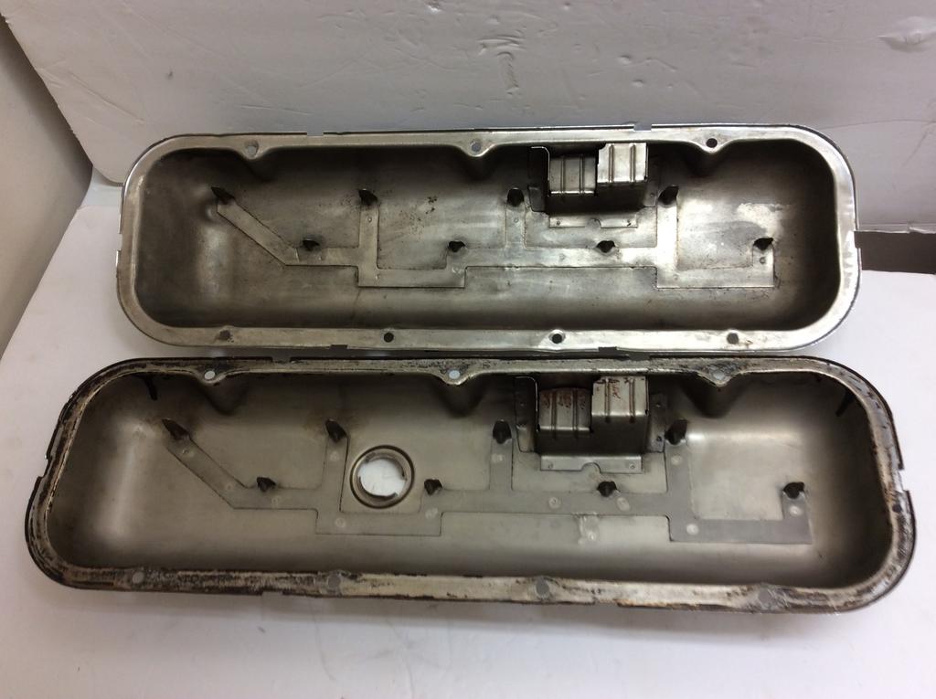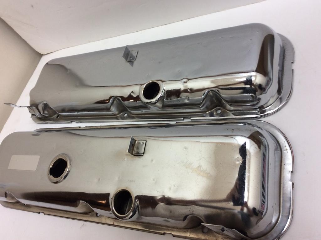 This is a very nice pair of original valve covers for being 49 years old, they are correct for 69 Chevelle or Corvette. The temperature wire clip needs coated.