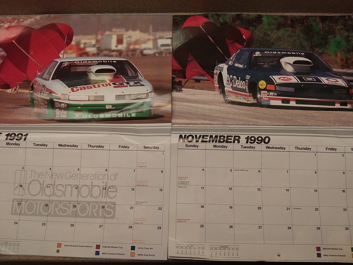 oldsmobile motorsports jacket(lg)1990&1991 large calendars,5 embroidered motorsports hats,1 embroidered team olds mobile hat.jacket id very nice,has been worn,the rest of it is new.$100 plus shipping