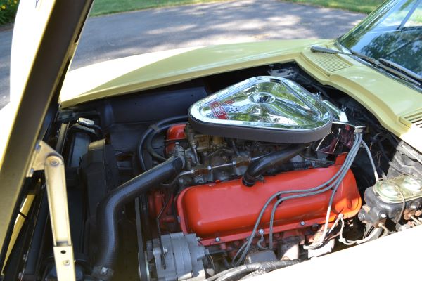 1967 Corvette 427 435 L71 number matching engine and transmission believed to be original to the car with 80,000 miles. The car is very original and still retains its original Vin tag, trim tag, interior, 6500 rpm tachometer, 80 lb oil pressure gauge and all glass. The original black vinyl interior is also in VGC. The car has been repainted its correct sunfire yellow at one time.