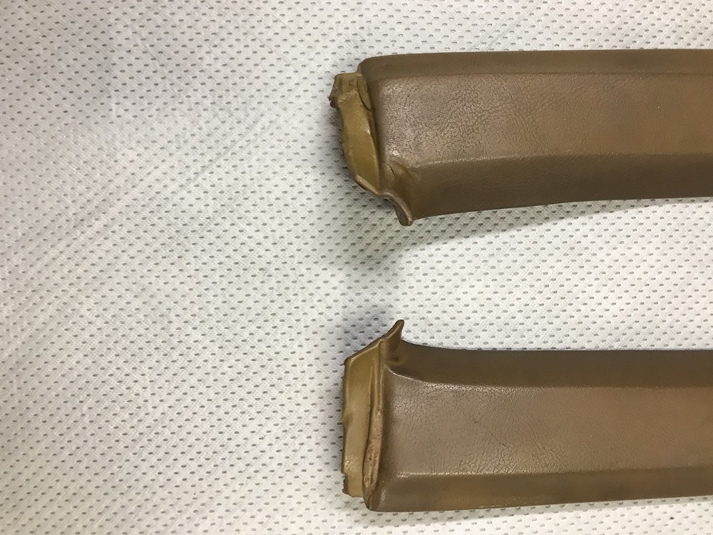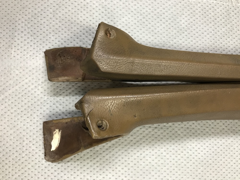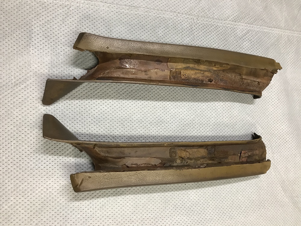 Nice original pair removed from 68 Camaro thirty years ago and properly stored. Looks like original color was gold. Couple of small issues on the lower driver's side as seen in a couple of pictures. Clean them up and spray with dye and they will look mint. $175.00/pr plus shipping. Paypal F/F please.