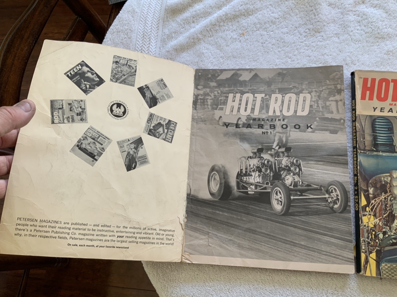 I have a set of hot Rod Magazine year books. They are #1 (1961), #2 (1962), and #3 (1963) they are all in very nice shape. I had the rate them on a scale of 1 to 10, it would be as follows: #1 probably about a 7 it Has a tear about 2 inches long at the binding in the front, the rest of the pages are nice. #2 Probably about an 8. Small tear in the back at the binding about a half inch long. Rest of the pages are very nice. #3 probably about an 8 as well, only because the back of it has what looks like The red outer covering is coming off slightly. Pages are very nice however. These books belong to a mentor of mine, they’ve been in my possession for probably 20 years but he bought them when they were new and he was a drag racer from the 50s. 60s, 70s, all the way into the 80s before he passed away of cancer at a very young age of 60.You could tell he enjoyed these by looking at the Edges, slightly dirty from somebody looking at them but took enough care because they are wrinkled or beat up. $10 Ea. Or $25.For all three plus the ride. If for some reason you think I’m out of line on the prices, please feel free to make me an offer. I will be listing other hot rod books and some early Hemmings Muscle Machines magazine soon. Payment to be made through PayPal via friends and family so that I am not dinged on fees. Shipping will be in a flat rate USPS bubble envelope at $7.50 ea.