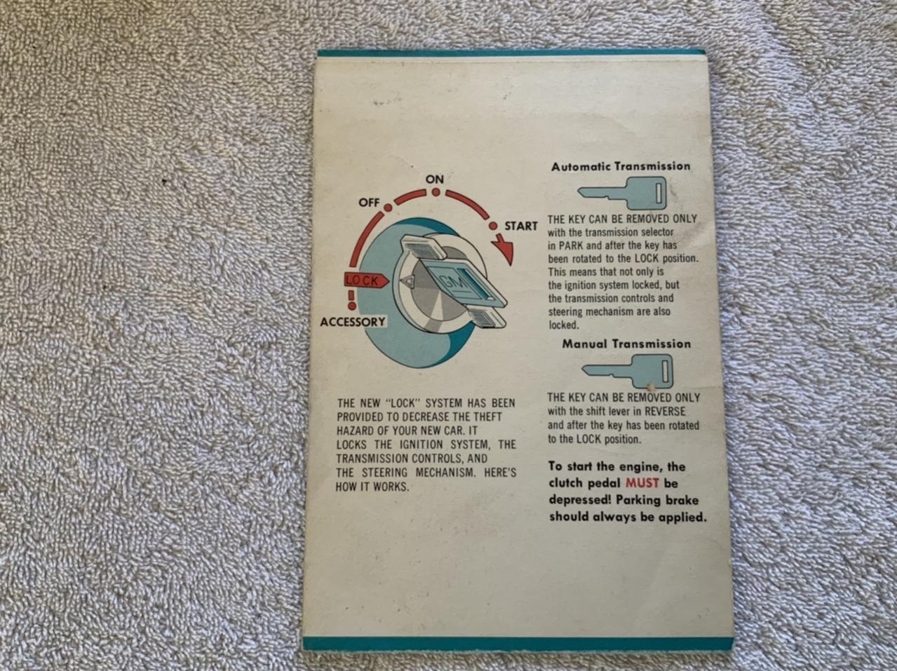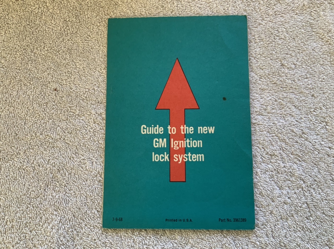 I have an original and kind of hard to find GM ignition lock system instructions.Most of you know that this would have came on the sunvisor. It has a tear at the seam where somebody carefully pulled it off, It is a very clean separation that I believe that could be repaired with tape and once installed you may not notice it. It has two small stains about an eighth of an inch in diameter on both the front and back sides. Has a date on the bottom of 7-9-68. Has great coloring. Perfect for that concourse Judged car.