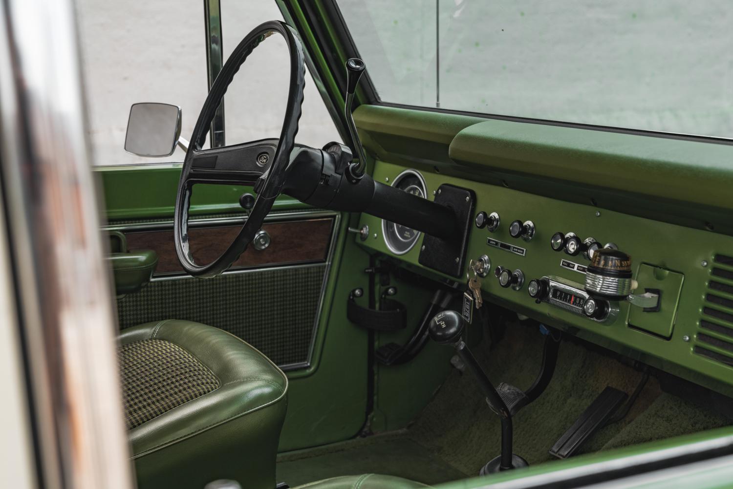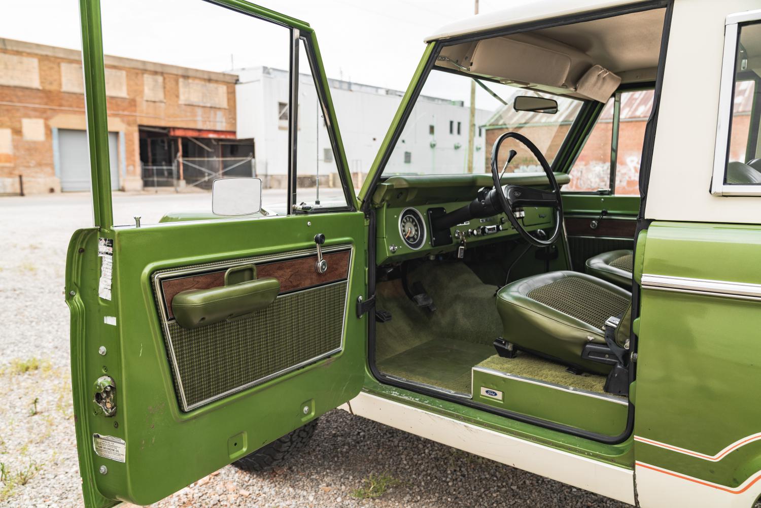 1975 Ford Bronco Ranger "Garage Find" survivor with 35,000 miles 302 Automatic Power steering. Came from down south but located in Iowa. Green glow with Ranger green hounds tooth interior. This bronco is 100% original including interior and paint and a high optioned Ranger. Nicest original Bronco I have ever seen. The only parts remove were maintenance items...brakes, belts, hoses....which I still have the originals that were on it new that go with vehicle. Radiator was replaced but I have the original which seems fine but could use restoration. I also added power brakes but have the original master cylinder so it can be easily put back to factory. This is a true time capsule. The bronco runs and drives excellent. I would drive it anywhere. I collect survivors and this is the most unbelievable vehicle I have owned. It smells and drives new. Clear Iowa Title
