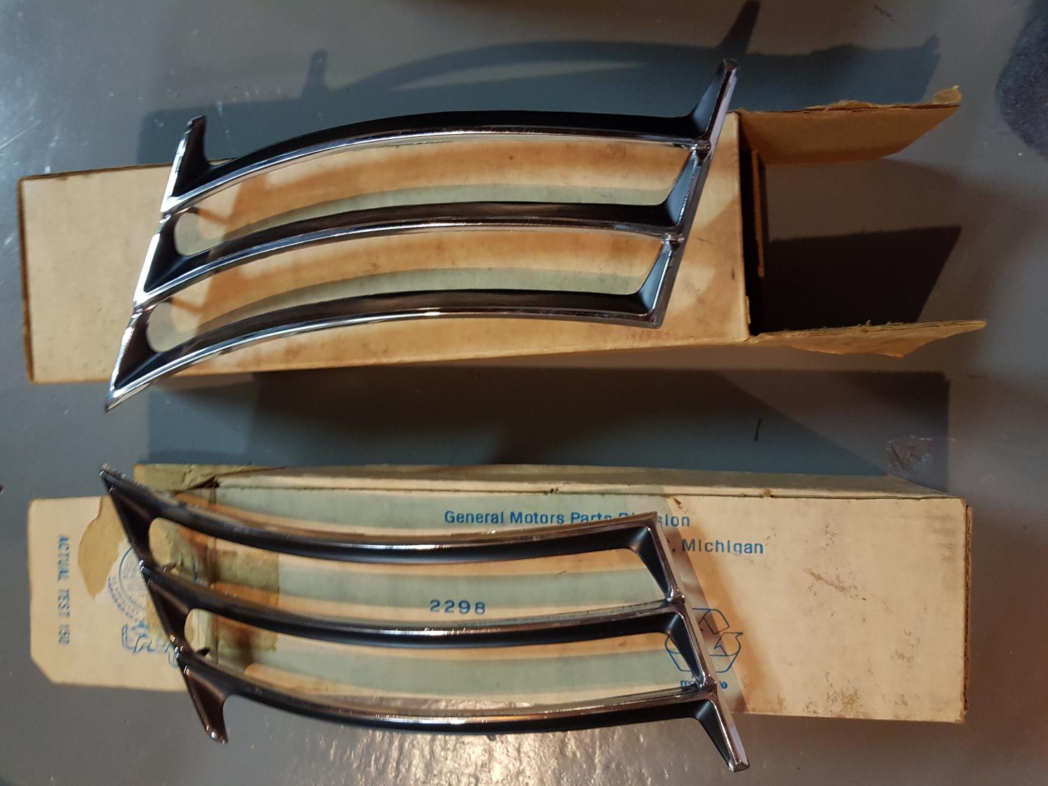 1- NOS Derby caps 3925801 $600.00SOLD 2-NOS Front Valance 3929978 $600.00 3-NOS Rear Spoiler 3949798 $450.00SOLD 4-NOS Rear Quarter panel louvers 8701059/8701060 $325SOLD 5-NOS Rear Deluxe bumper guards 3938607 (no inserts) pair $340.00 6-NOS Small bumper guards 3938633 pair $160.00SOLD 7-NOS License plate light 911576 $200.00SOLD 8-NOS Engine mounts 3990918 $400.00SOLD 9-NOS Engine dipstick 3951576 $200.00SOLD 10- NOS Rear leaf spring front eye brackets $425.00 11-Used Black Comfort grip steering wheel $300.00 Last edited by CamaroKev; 04-03-2021 at 10:59 PM. |