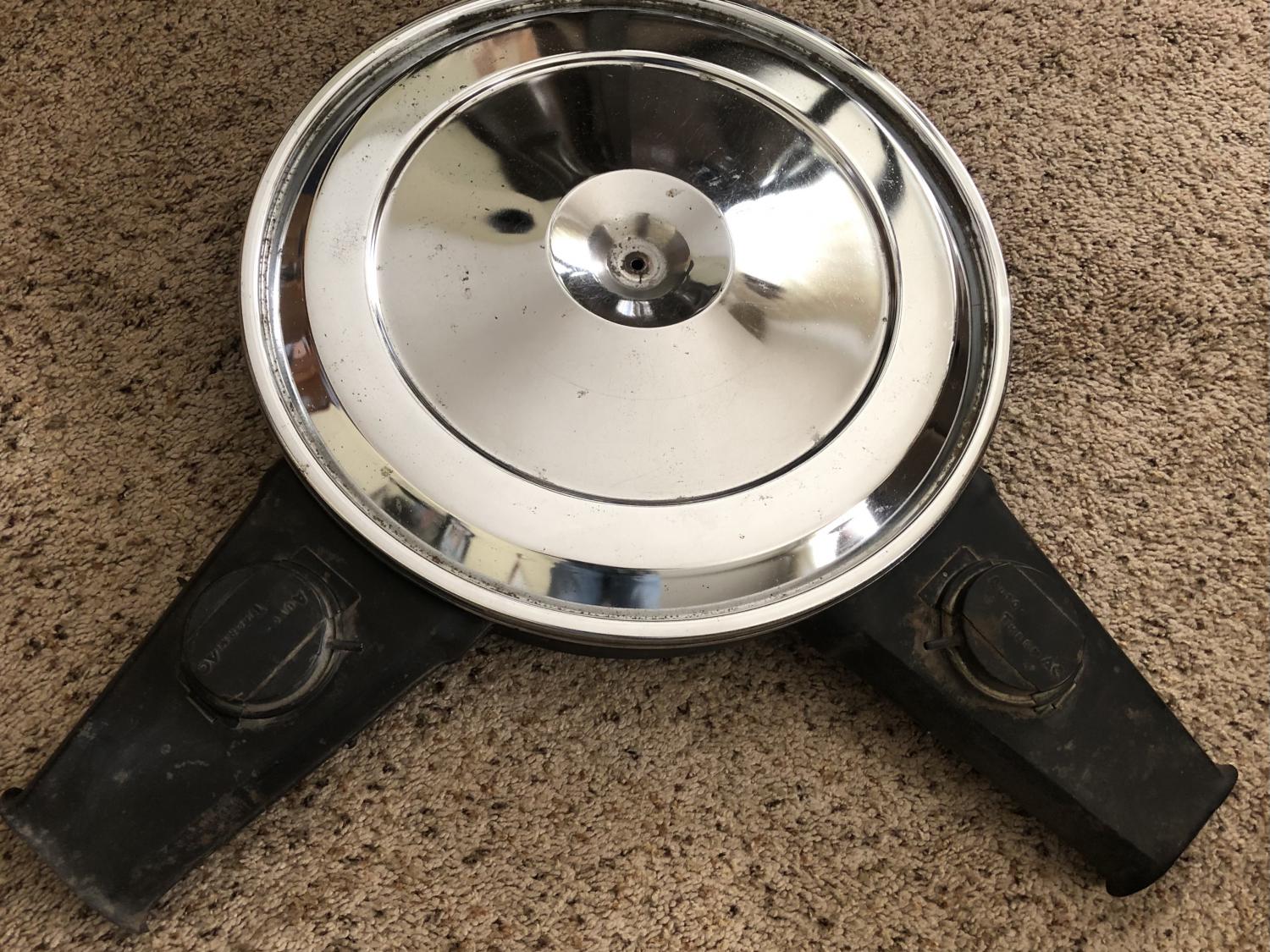 Excellent original dual snorkel air cleaner that is complete with factory chrome lid. Look at the pics, this is a nice piece. Lid has a few very minor imperfections in the chrome but overall a nice solid original GM air cleaner assembly. Buyer pays shipping, PayPal only.