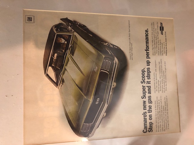 I showed Karen the most recent post in the Chevrolet section with the ad for the SS/RS Camaro. Would love to have an original one of these to frame and give to her as a birthday gift. Let me know if that can happen.