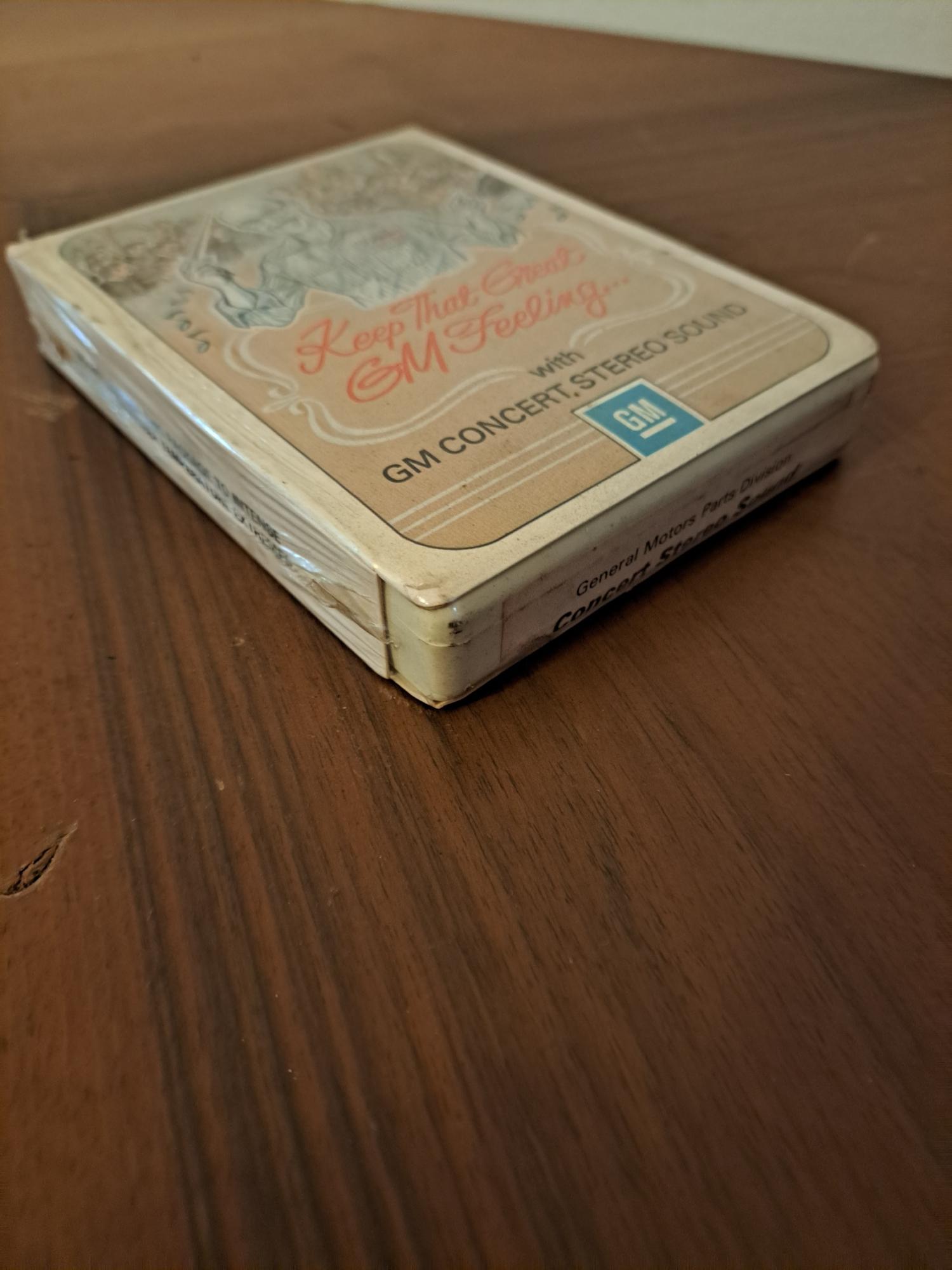 This is a 1978 General Motors Parts Division factory shrink wrapped 8-track tape. It has an assortment of styles of music to demonstrate the 8-track tape players. Price includes shipping. $20