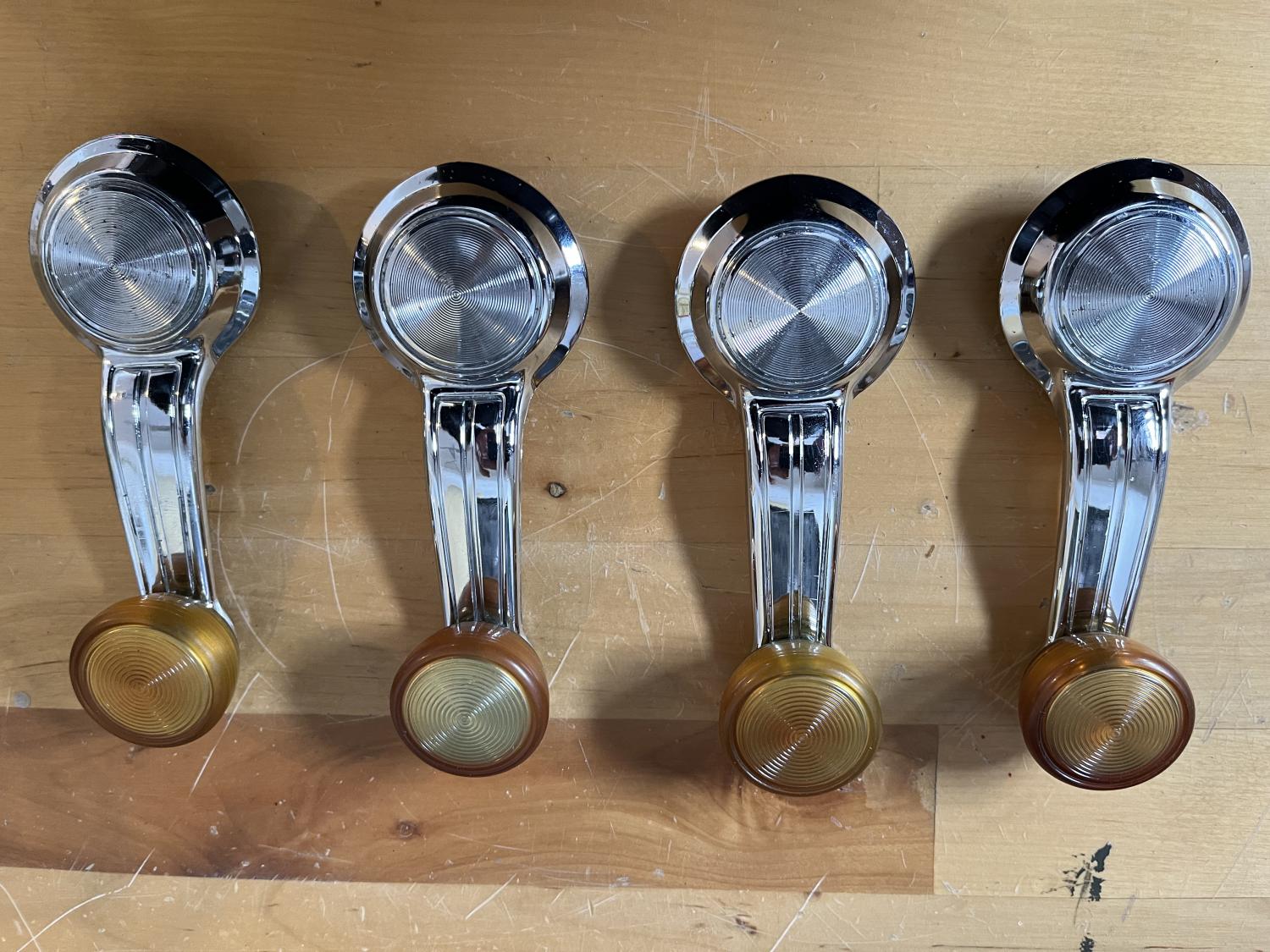 Set of used (4) 1970 Chevelle window crank handles. Used so best for original or survivor car. May fit other GM years and vehicles as well. Plastic knobs are in good condition but yellow with age as seen in pics. I've had these for years.