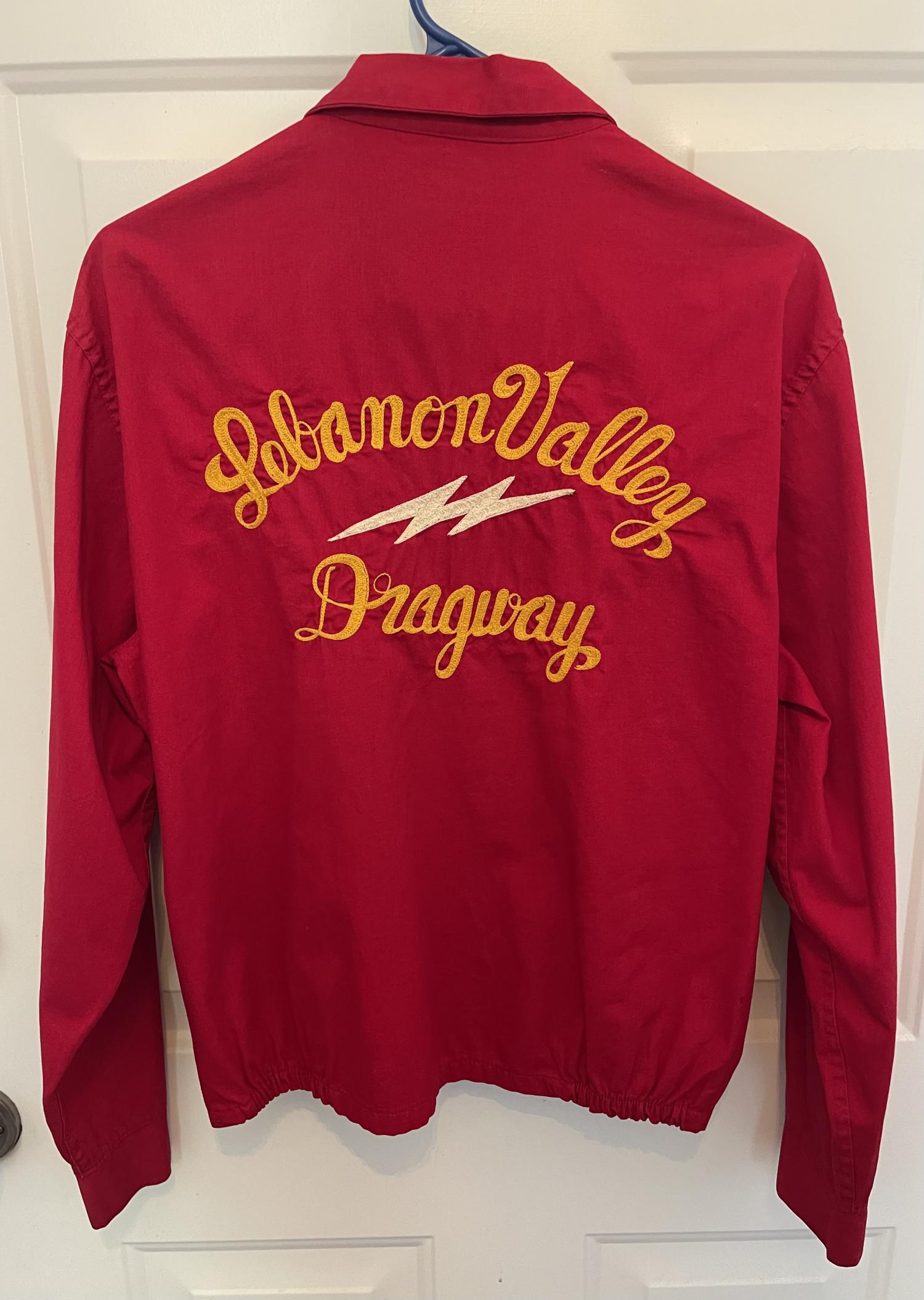 Hey guys, available from my personal collection of many years. Lebanon Valley Dragway chain stitched jacket. Condition is excellent, no rips or holes, no funky odors. Smoke free home. Zipper works perfectly. Size Medium. Has an old vintage GTO patch attached. Price is $250 plus $10 shipping.