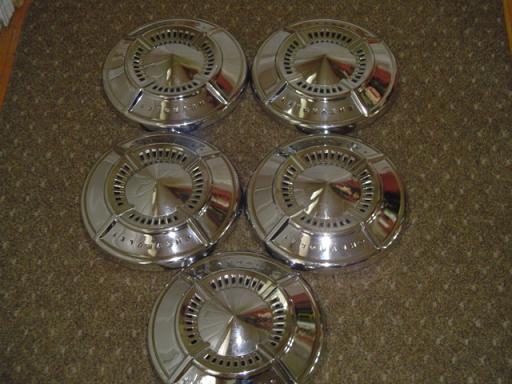 I have a set of 5, yes 5, 62 Chevy 409 Dogdish caps for sale. They are stunning and ready for your show car. No disappointments. I can send pics. I am a good friend of Jim Hughes (NWYenko). Great chrome, black paint, no splits, zero dents!! (A very small scratch app 1/2 inch hardly noticeable on one cap) Zero pry marks except for one tiny mark on the same cap with the scratch. You will find none better unless they are NOS !! $450 + shipping from Blaine Washington. [email protected] Ric