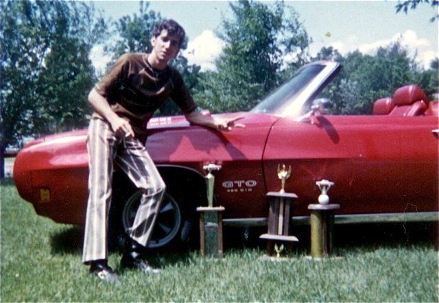 Here's my Uncle Terry, circa 1971. Behind him is his Red/Red 1970 GTO 455/4sp convertible with A/C. It was a lightly used, welcome home present to himself upon returning relatively intact from Vietnam, and he traded in his 1968 Coronet R/T that remained in St. Paul MN during his tour. I don't know if you can see it in the downsized photo, but it has "455 cid" callouts on the fender AND "RAM AIR IV" callouts on the hood. Despite his cool rides, my uncle was not particularly a gearhead, and the RAIV hood decals were added by the original owner or dealer.