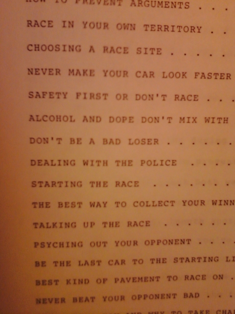 "Dealing with the Police" that's funny... Must explain how to talk your way out of a drag race ticket... Cool book!!