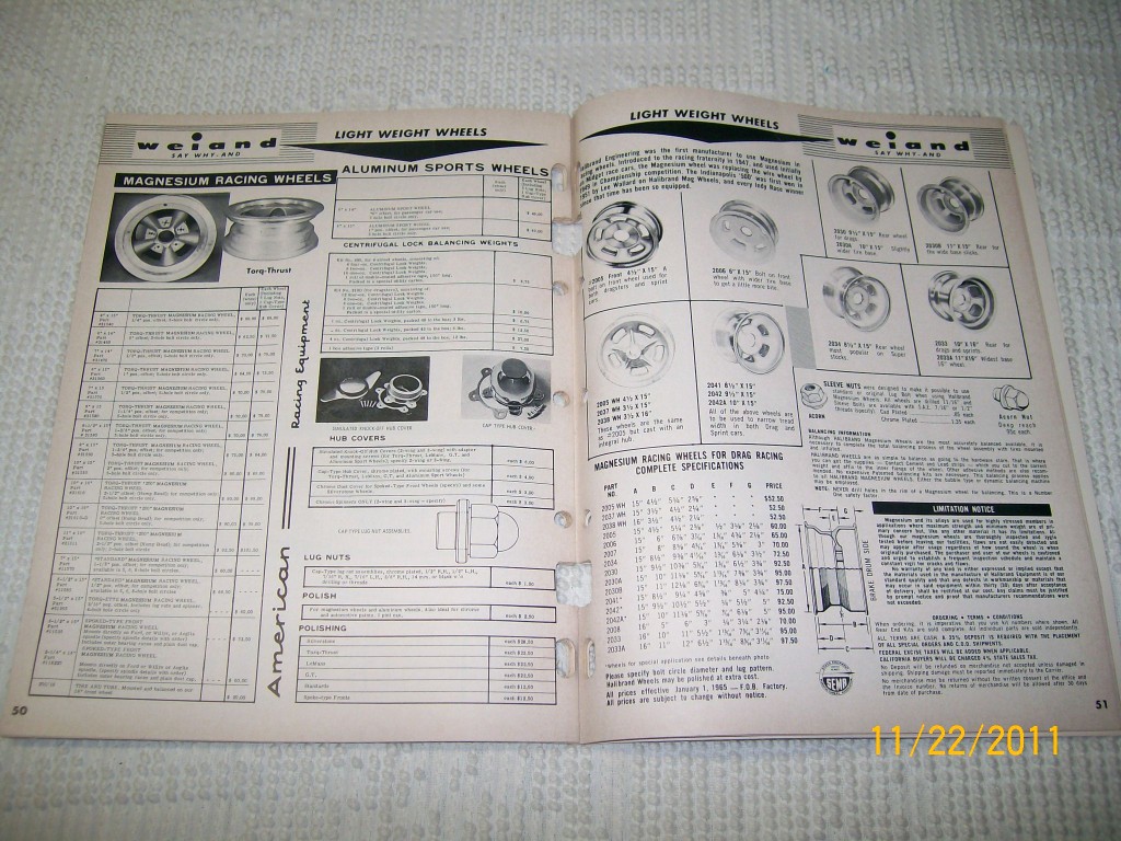 I have a 65 1/2 Weiand (say Why-and) catalog with LeRoy Yarbrough on the cover. It is 68 pages and is in very good condition and full of cool stuff. The price is $125.00 OBO and includes shipping to the lower 48.