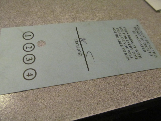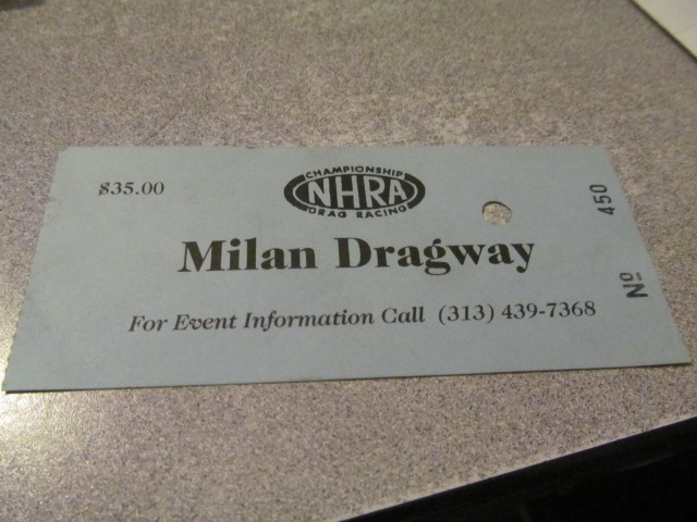 Tech OK punch card from Milan Dragway in Michigan. Original item. Have 2 15.00 each includes the ride.