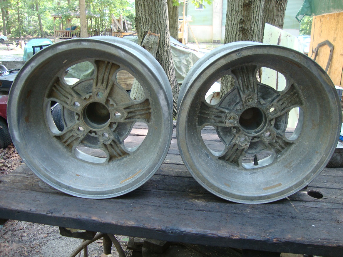 Nice set of Ansen Sprints. These are 15x8" and have 4-3/4" GM bolt pattern. No curb rash but do need a re-polishing. Both center caps are cracked. $350 for the pair.