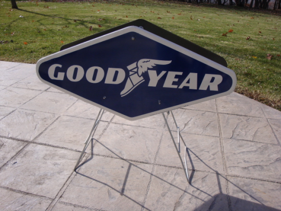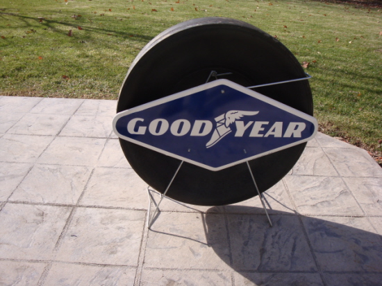 An N.O.S. (new old stock) vintage Good Year speed shop or service station tire stand. Excellant condition, no paint chips or rust. I took this out of original box 3 years ago to use for display. I do not have original box. Measures 23" x 28" This is from 1960s/1970s time period. $150.00 plus actual shipping cost to your zip code.