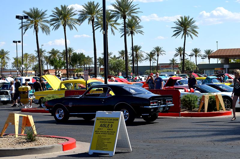 Fred R saved us some parking spots. Soon after, Gary B and Bruce and Holly rolled in. Met up with all of the regulars while walking around. There was a Nostalgic Race at Wild Horse Pass Raceway, so attendance was down a little at Pavilions. Only took 15 pics, so this will be a quickie. ![]() Shaun (galveston) ![]() Stripe on the hood continued on the roof. ![]() Us ![]() BIG Dodge Bunch of '69's here tonight ![]() ![]() ![]() ![]() Continued..